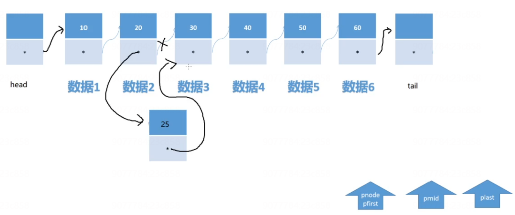 //2.找到要插入到的位置, 插入到pfirst和pmid之间