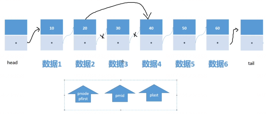 pfirst->next = plast;//连接前一个结点和后一个结点