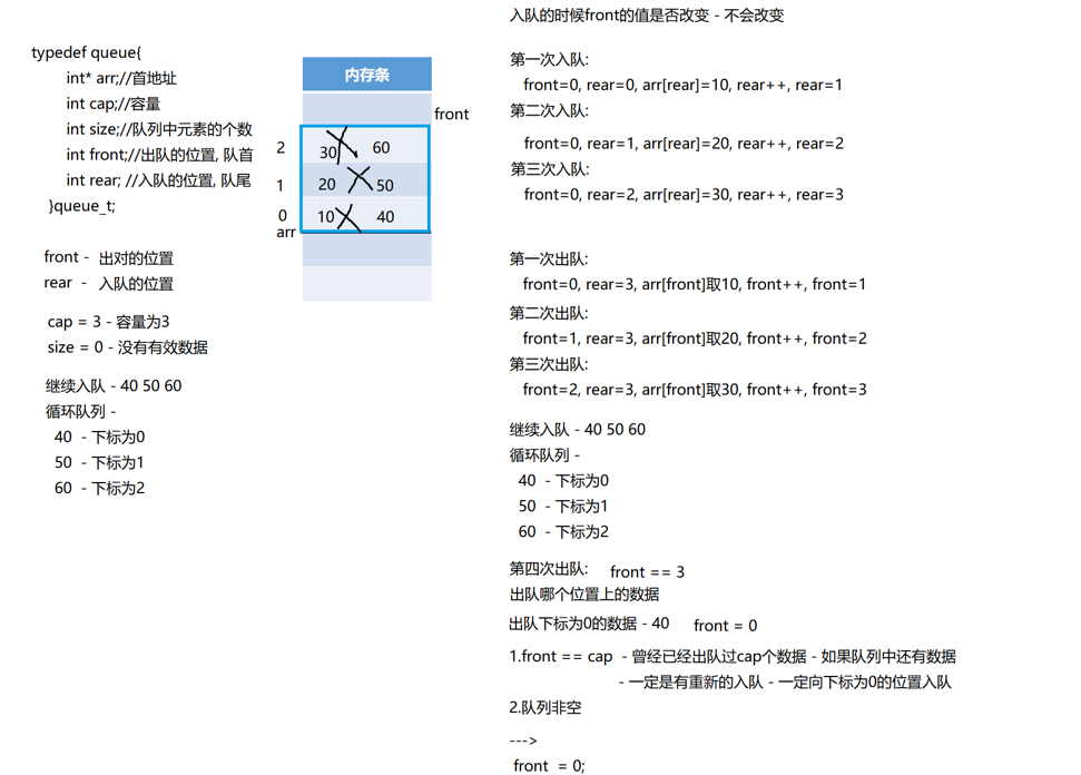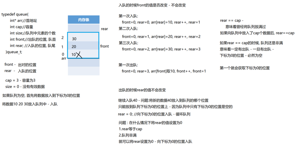 queue_push(&queue, i);//入队:10(0) 20(1) 30(2) 40(3)